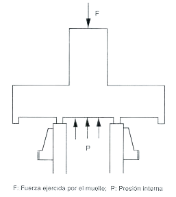 Cuando la presión disminuye, la válvula cierra a una presión ligeramente inferior a la presión de tarado como consecuencia de la energía cinética del fluido en el escape. En la figura 2 se pueden apreciar los diferentes niveles de presión existentes.